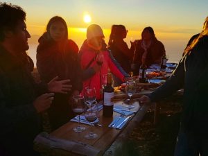 Una vez que llegues al mirador cerca del Cráter Rojo, te esperaremos con una exquisita variedad de quesos, fiambres, frutas de estación y tapas elaboradas por nuestro chef. Todo esto maridado con vinos seleccionados, para que disfrutes de una tarde inolvidable al pie del Volcán, mientras contemplas la inmensidad del Lago Llanquihue.